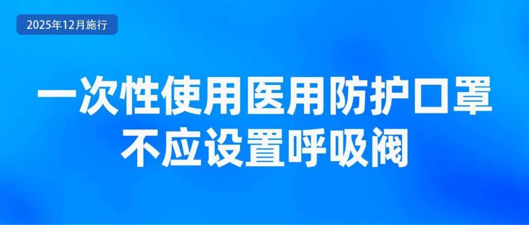 新修订的《医用防护口罩》强制性国度尺度自2025年12月1日起实施。新国标划定,一次性利用医用防护口罩不该设置呼吸阀;应配有鼻夹或替代鼻夹的设想,佩带时起到固定和密合感化。最小发卖单位应具有清晰的中文标记,包罗利用刻日或者失效日期;施行尺度编号或产物手艺要求编号;“一次性”利用字样或符号等。